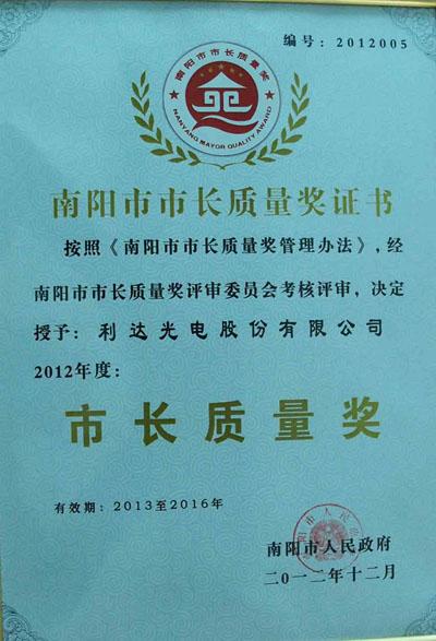利達(dá)光電榮獲2012年度南陽市“市長質(zhì)量獎(jiǎng)”