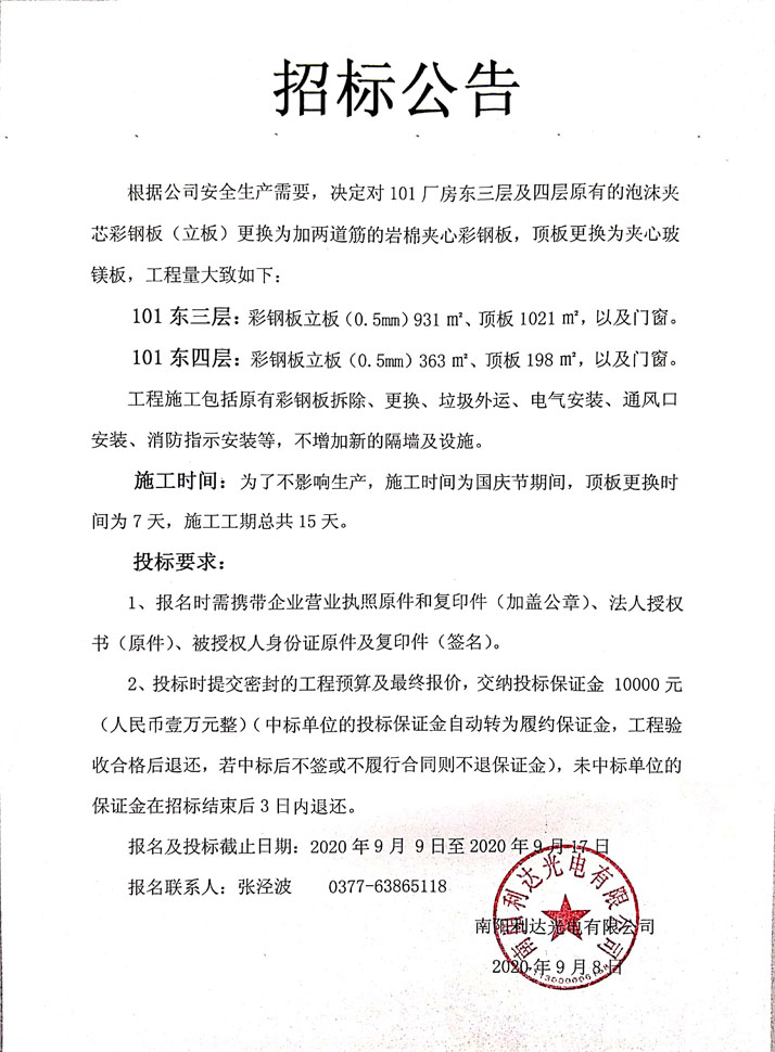 101廠房東三 四層彩鋼板招標(biāo)公告