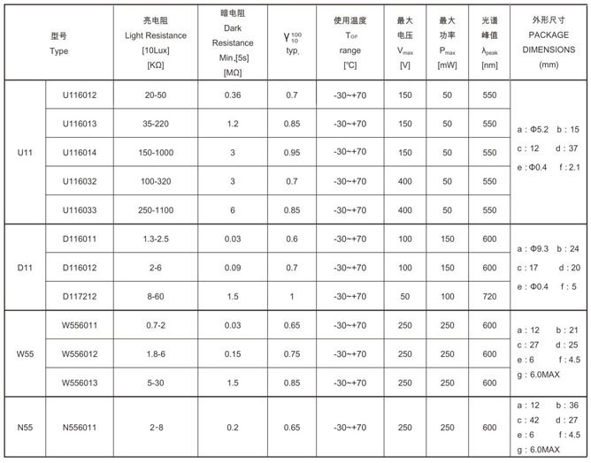 玻璃殼封裝光敏電阻 glass package photoresistors